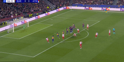 第45分钟,阿尔瓦雷斯直接任意球破门,马竞1-0巴萨!