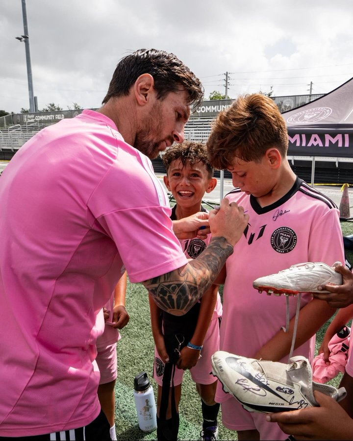 梅西现身迈阿密国际青训营,亲切指导小球员并签名留念